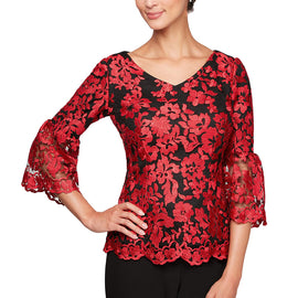 Alex Evenings Women's Embroidered Blouse with Bell Sleeves Shirt Missy and Plus