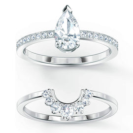 SWAROVSKI Women's Attract White Rhodium Plated Pear Shaped 2pc Crystal Ring Collection