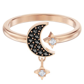 SWAROVSKI Women's Symbolic Rose-Gold Plated Moon Motif Ring, Black Crystal